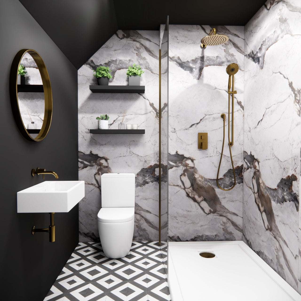 Create a stylish and practical marble bathroom with our Sapphire Marble Matt PVC shower wall panels from The Panel World. Designed with a natural Marble-inspired look and a pristine cream base with blue and beige accents, to give a contemporary modern feature. These panels provide a premium finish with lasting durability.