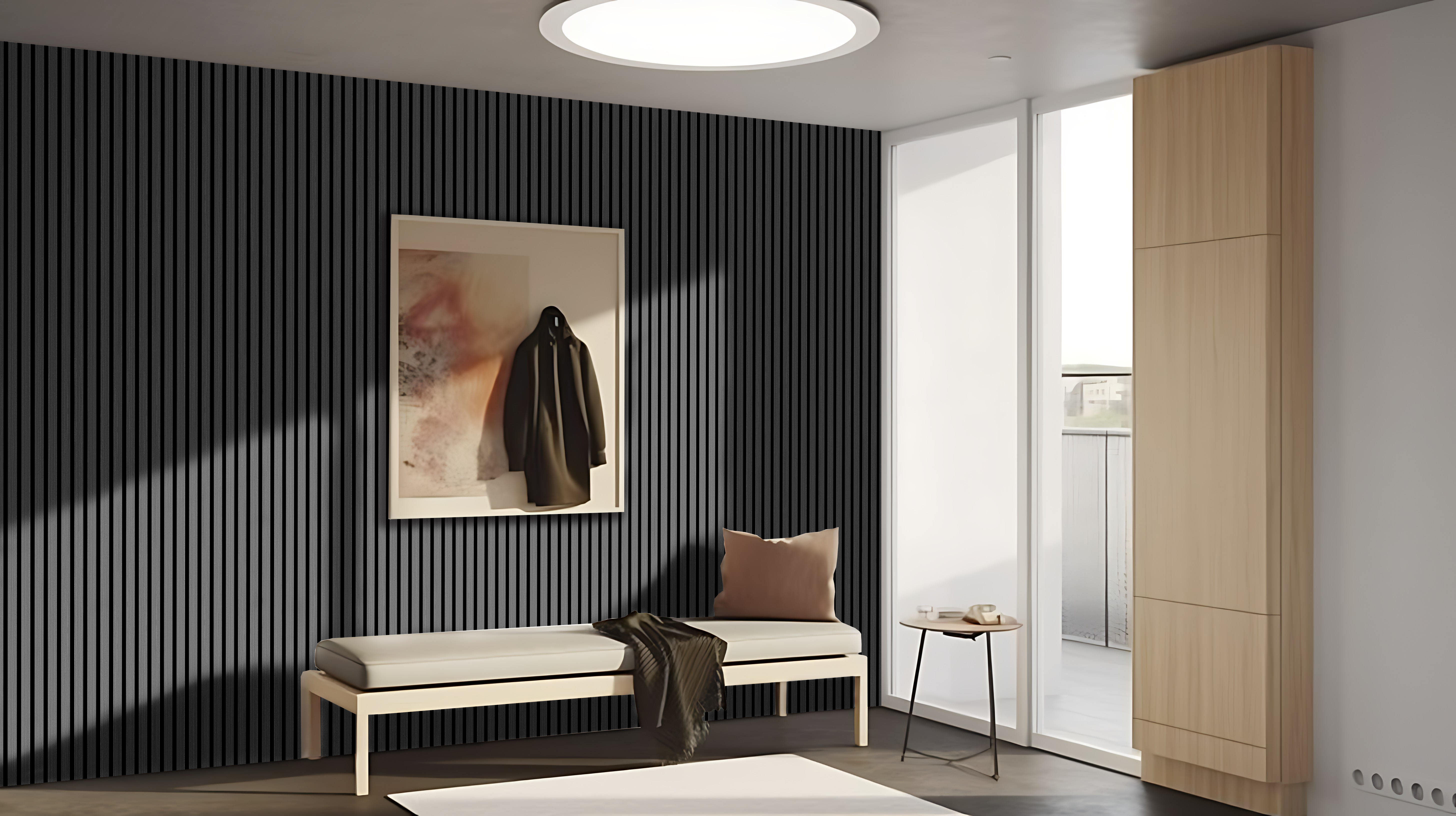 These sleek wood slat panels not only elevate the design of your space but also offer practical benefits like soundproofing and reducing echoes—perfect for larger rooms or areas that need better acoustics.
