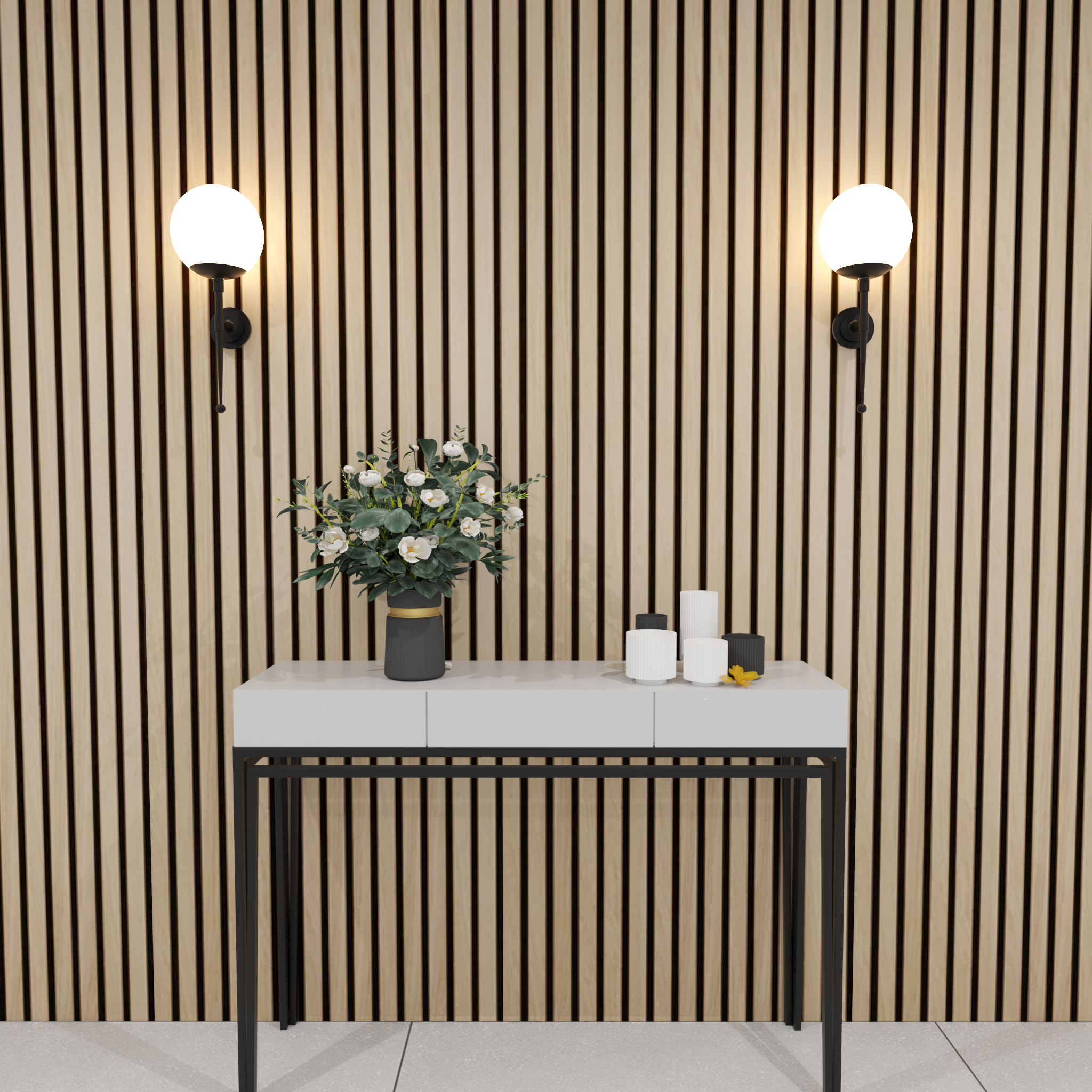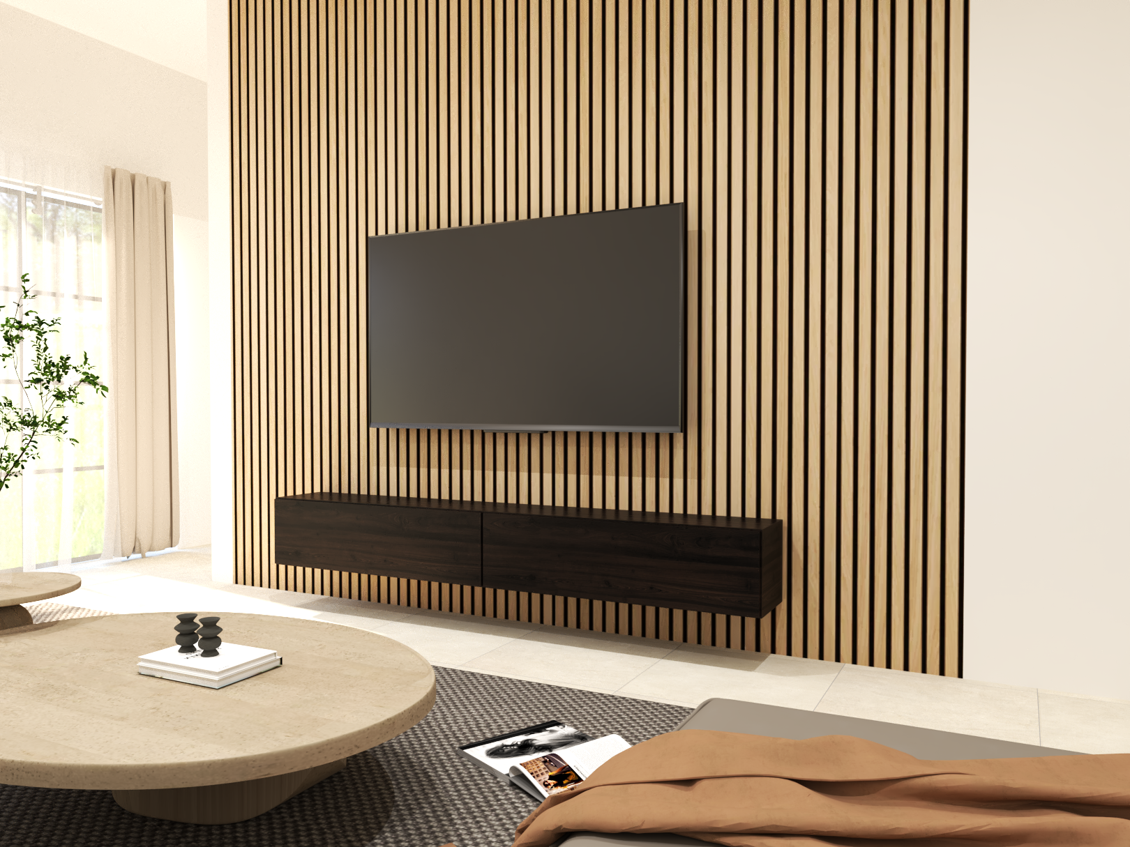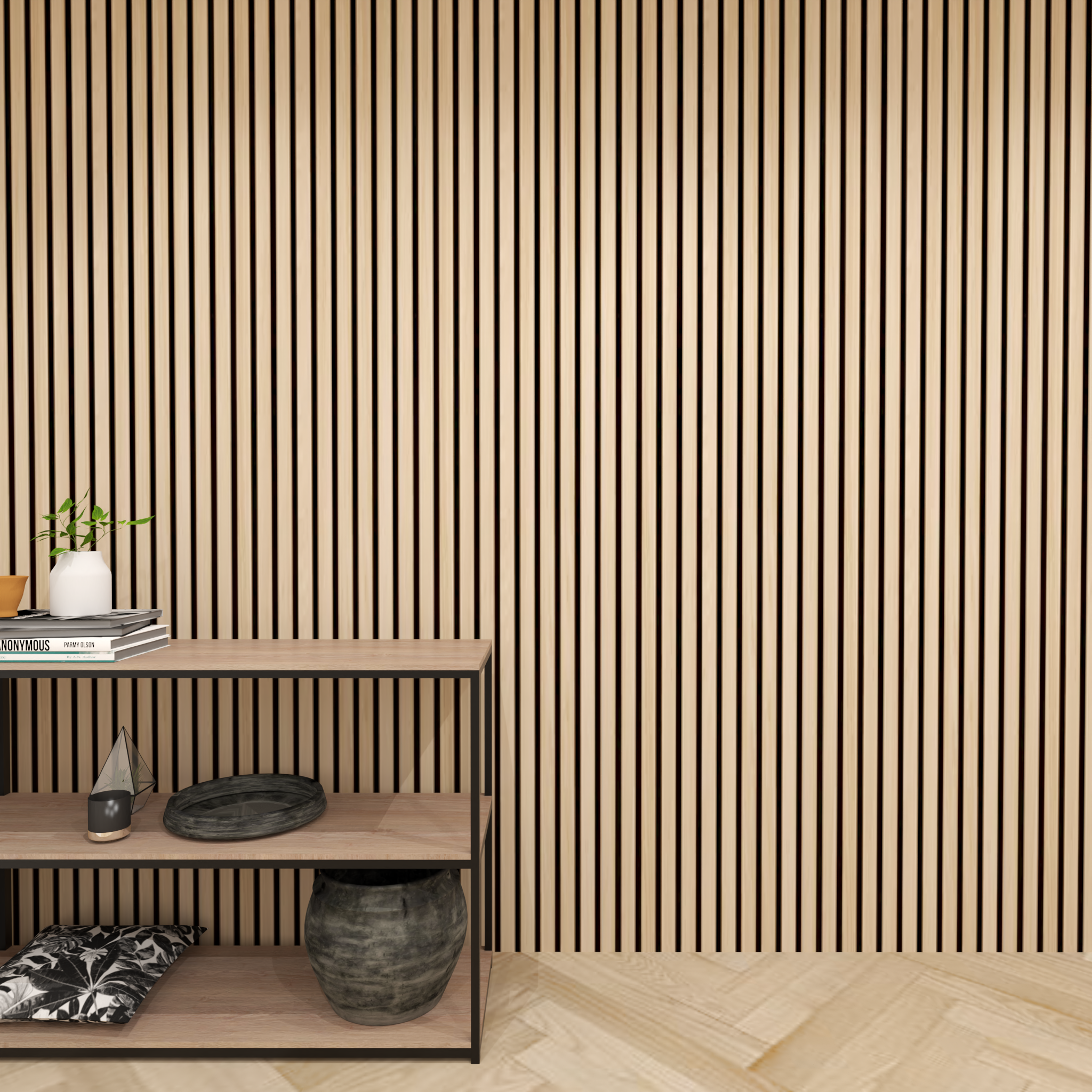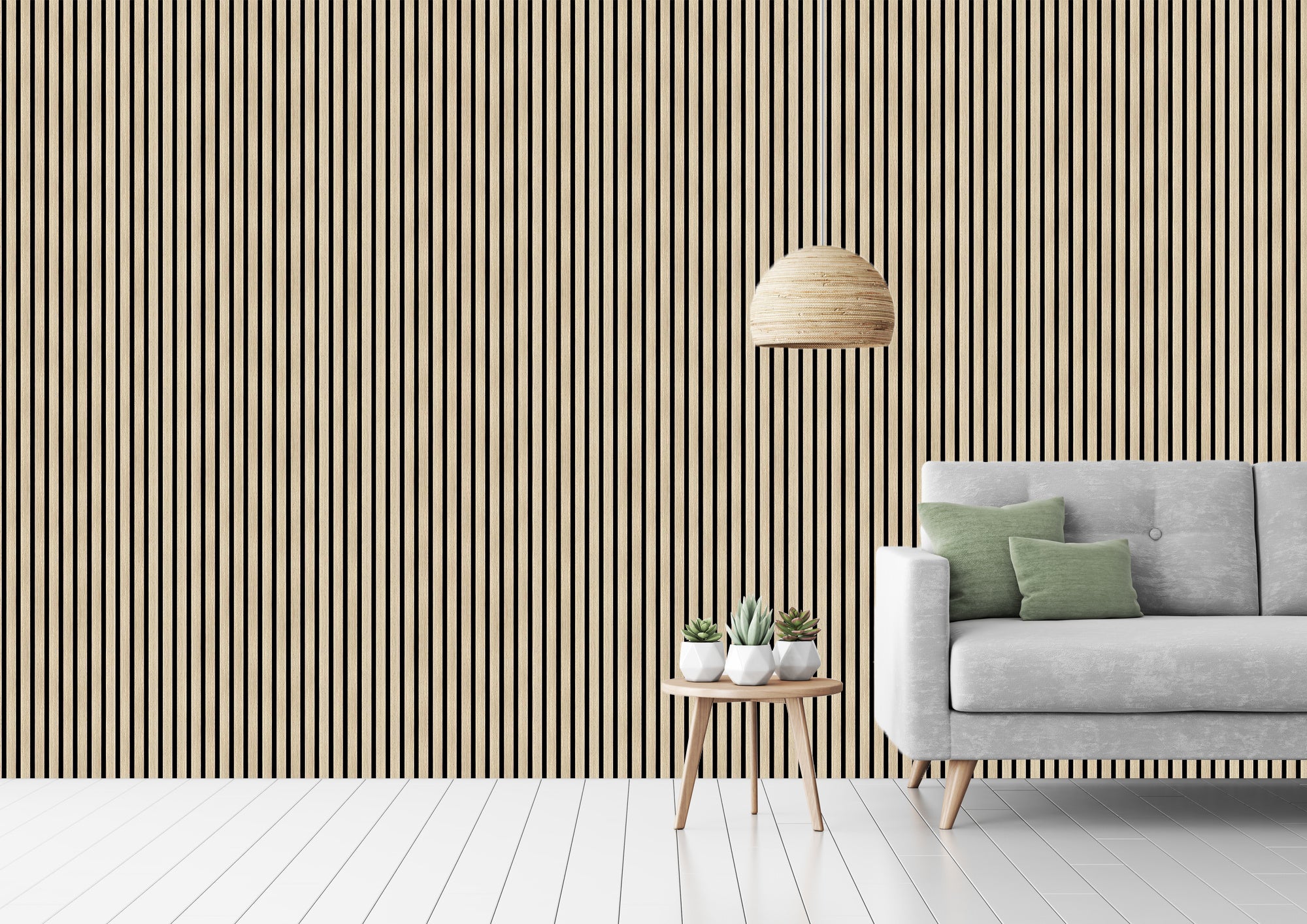 These sleek wood slat panels not only elevate the design of your space but also offer practical benefits like soundproofing and reducing echoes—perfect for larger rooms or areas that need better acoustics.