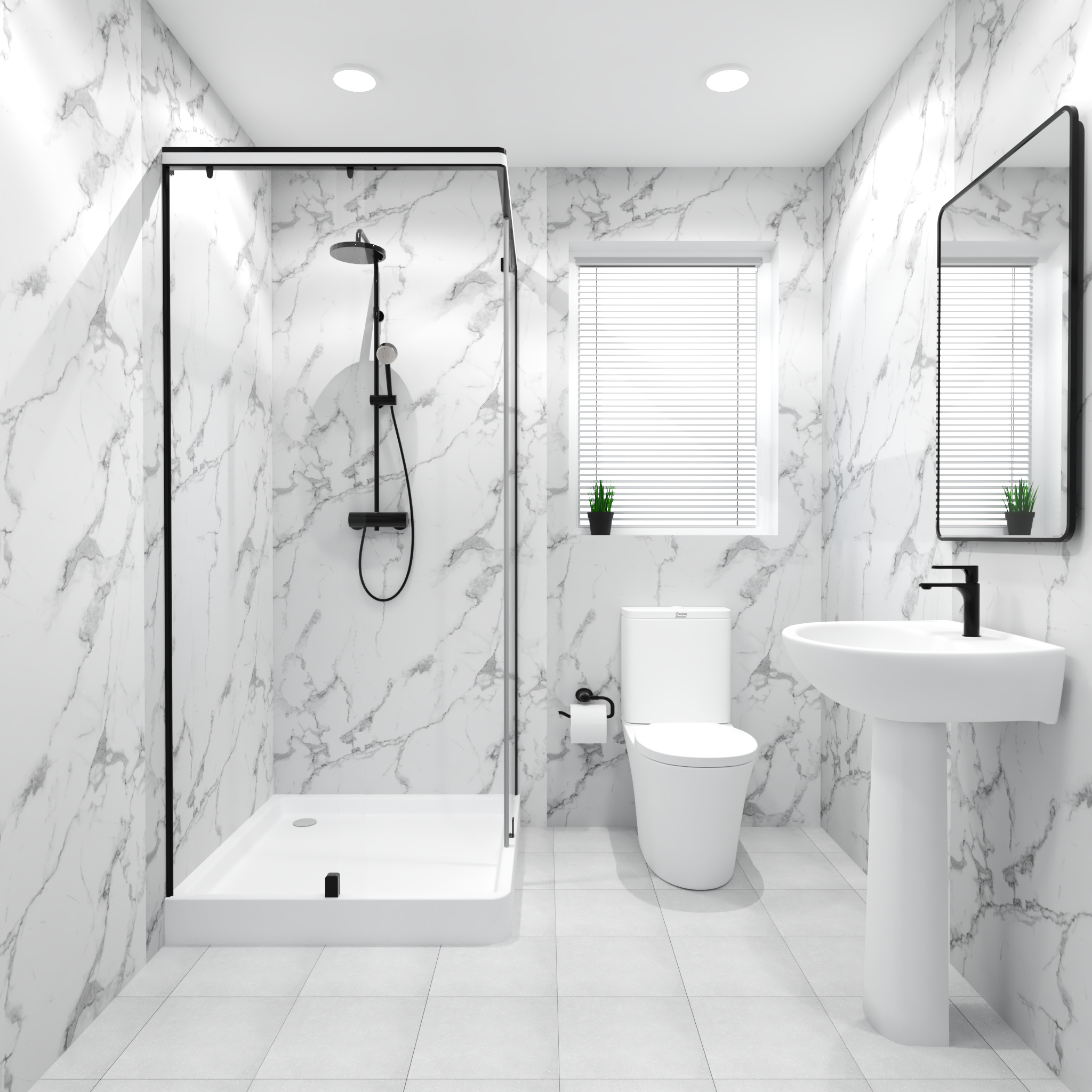 Create the luxurious bathroom of your dreams with the unmatched excellence of our White Calacatta Marble PVC shower wall panels from The Panel World. Elevate your bathroom experience to a whole new level with this masterpiece that combines timeless design and modern décor. This board reflects the natural beauty of marble, bringing a touch of prestige to your bathroom. This design is excellent to couple with any bathroom accessories being a neutral yet elegant design.